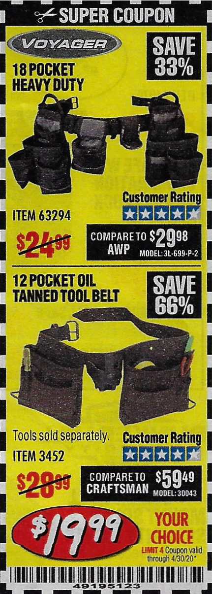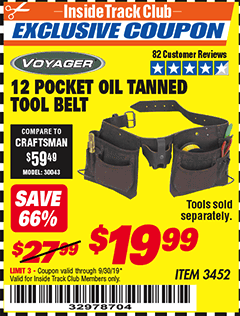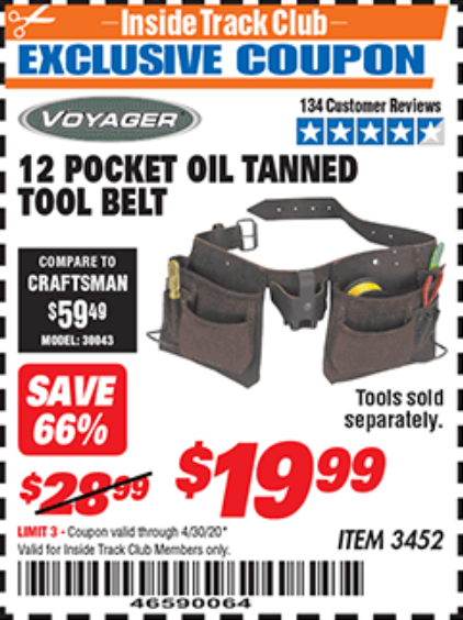 VOYAGER 12-POCKET OIL-TANNED TOOL BELT Lot No. 3452 Expired: 6/30/20 - $19.99 Coupon Code: '49195123'