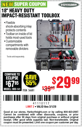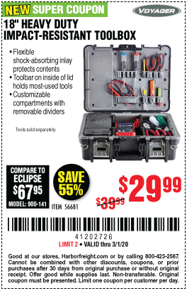 VOYAGER 18 IN. ORGANIZER CASE Lot No. 56681 Expired: 3/1/20 - $29.99 Coupon Code: '41202726'