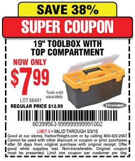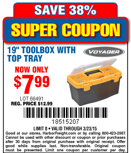 VOYAGER 19 IN. TOOLBOX WITH TOP TRAY Lot No. 66491 Expired: 11/5/15 - $7.99 Coupon Code: '11050090'