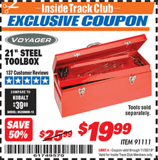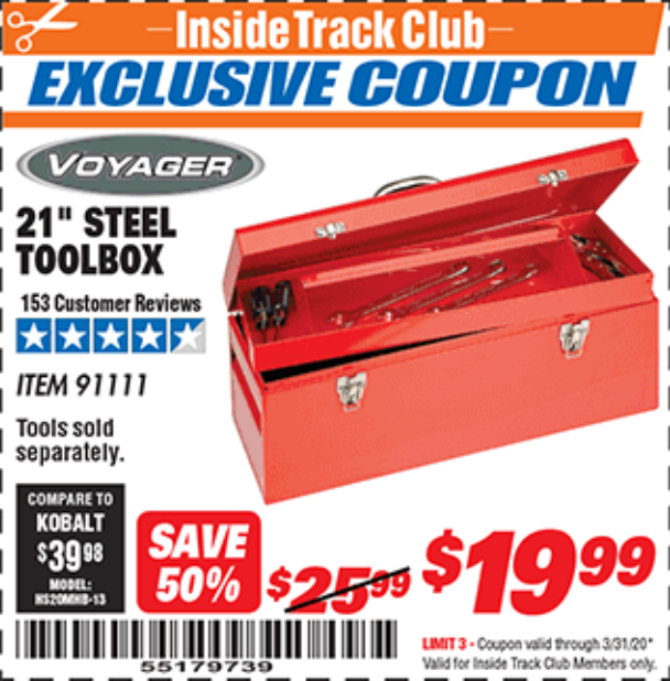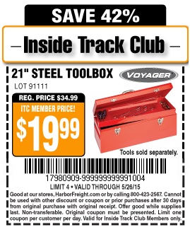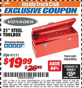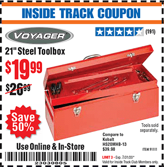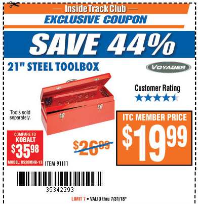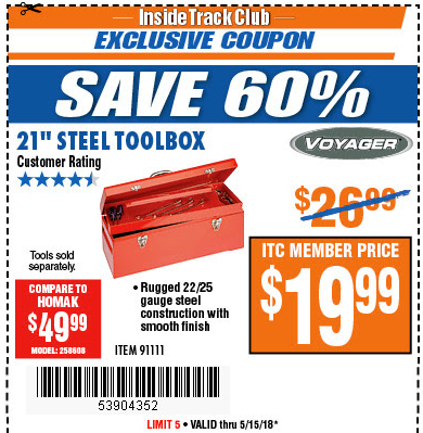 ITC VOYAGER 21 IN. STEEL TOOLBOX Lot No. 91111 Expired: 6/30/15 - $19.99 Coupon Code: '89581513'