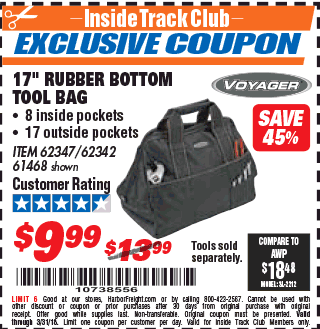 VOYAGER 25 POCKET MECHANICS TOOL BAG Lot No. 61468 Expired: 2/23/25 - $9.99 Coupon Code: '75957080'
