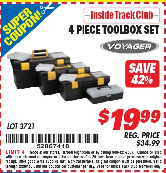 ITC VOYAGER TOOLBOX SET, 4-PIECE Lot No. 3721 Expired: 2/28/15 - $19.99 Coupon Code: '52067410'