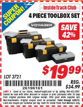 ITC VOYAGER TOOLBOX SET, 4-PIECE Lot No. 3721 Expired: 4/30/15 - $19.99 Coupon Code: '26196161'