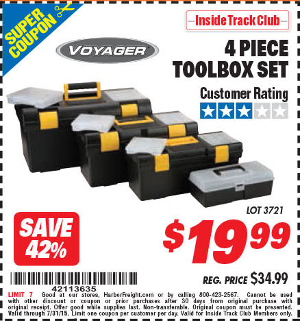 ITC VOYAGER TOOLBOX SET, 4-PIECE Lot No. 3721 Expired: 7/31/15 - $19.99 Coupon Code: '42113635'