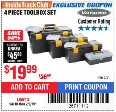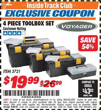 ITC VOYAGER TOOLBOX SET, 4-PIECE Lot No. 3721 Expired: 6/30/18 - $19.99 Coupon Code: '38904498'