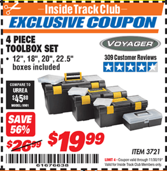 ITC VOYAGER TOOLBOX SET, 4-PIECE Lot No. 3721 Expired: 9/30/19 - $19.99 Coupon Code: '32199268'