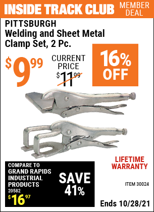 ITC WELDING AND SHEET METAL CLAMP SET, 2 PC. Lot No. 30024 Expired: 10/28/21 - $9.99 Coupon Code: 'n/a'