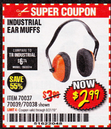 WESTERN SAFETY EAR MUFFS Lot No. 70038/70037 Expired: 8/31/19 - $2.99 Coupon Code: '51622048'