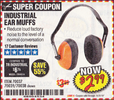 WESTERN SAFETY EAR MUFFS Lot No. 70038/70037 Expired: 10/31/19 - $2.99 Coupon Code: '68504534'