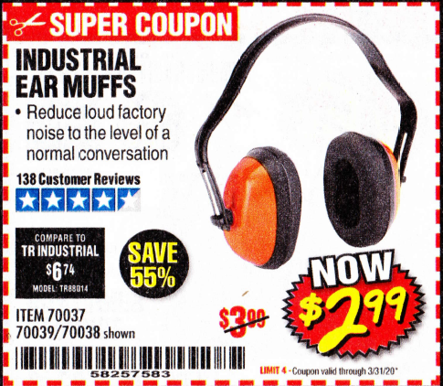 WESTERN SAFETY EAR MUFFS Lot No. 70038/70037 Expired: 3/31/20 - $2.99 Coupon Code: '58257583'