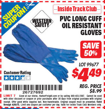 ITC WESTERN SAFETY PVC LONG-CUFF OIL-RESISTANT GLOVES Lot No. 99677 Expired: 4/30/15 - $4.49 Coupon Code: '26727692'