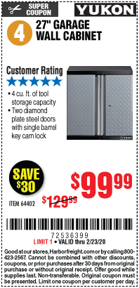 YUKON 27" GARAGE WALL CABINET Lot No. 64402 Expired: 2/23/20 - $99.99 Coupon Code: '72536399'
