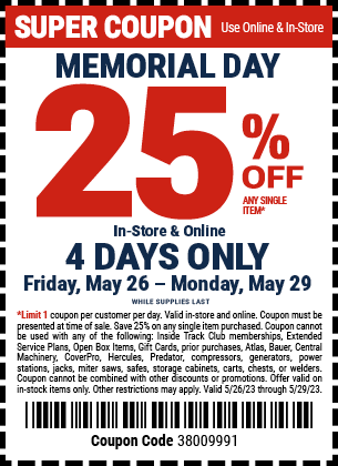 25% Off - Valid 05/26/2023 thru 05/29/2023 '38009991'
